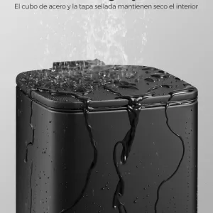 Sellada y Sin Olores: Fabricado en acero inoxidable, este cubo de basura está equipado con una tapa hermética que evita la salida de olores y mantiene el interior seco, incluso en ambientes húmedos como los baños.
