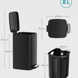 Cubo Extraíble con Cómoda Asa: El cubo interior se puede retirar fácilmente utilizando las asas integradas, lo que permite un vaciado y limpieza sin complicaciones. Además, el asa trasera facilita el transporte y la colocación del cubo.