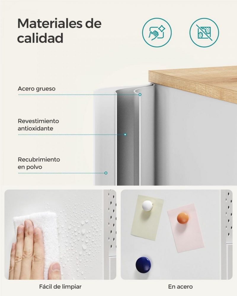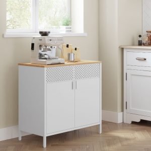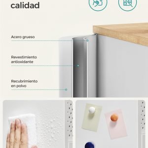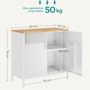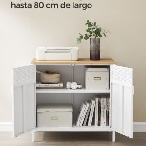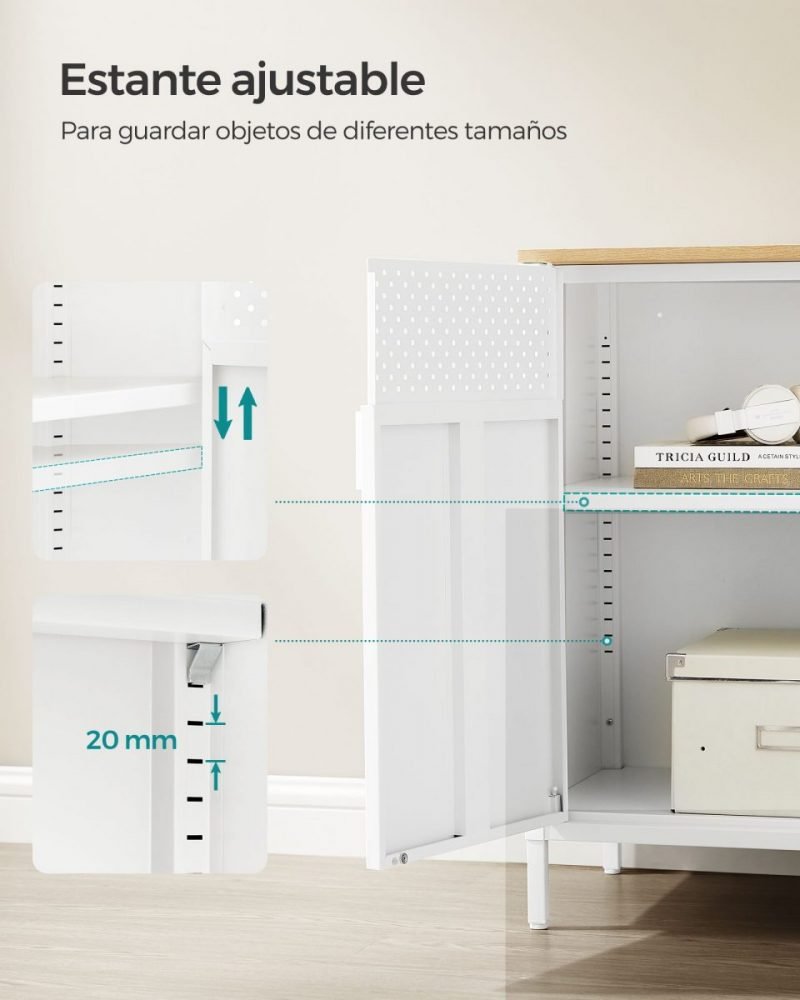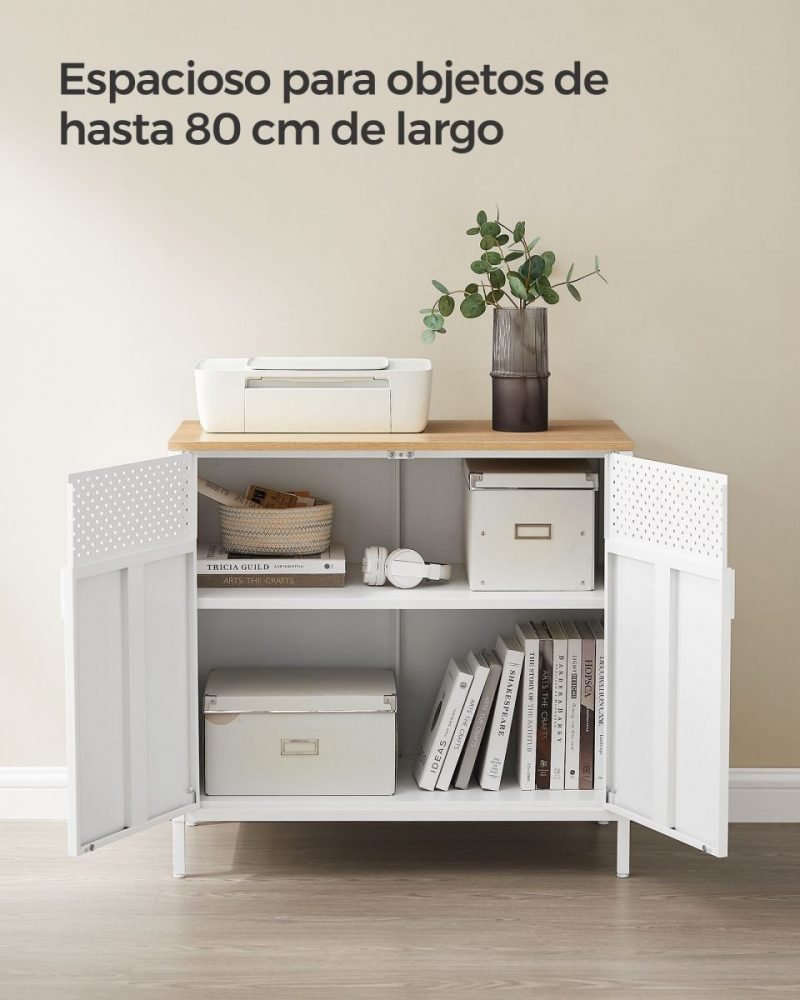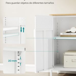 Aparador metal doble puerta magnética, estante ajustable, blanco