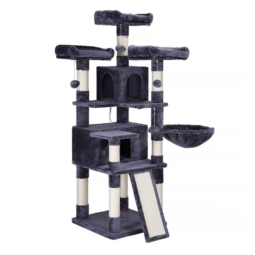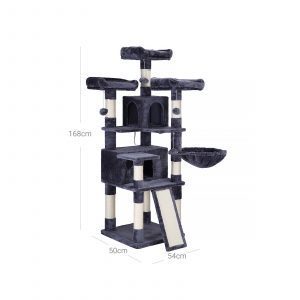Descubre nuestro árbol para gatos de 168 cm de altura, diseñado para ofrecer un espacio excepcional a tus amigos felinos. Con su escalera integrada, tanto gatitos como gatos mayores pueden ascender fácilmente, disfrutando de una verdadera experiencia de escalada.