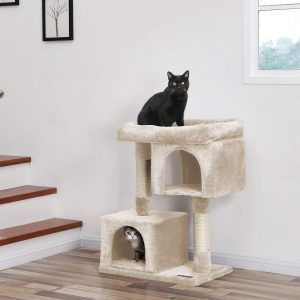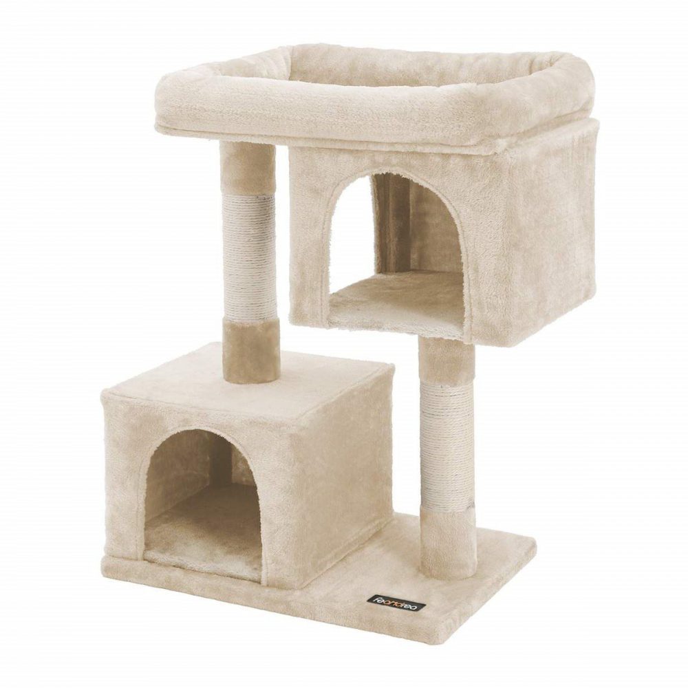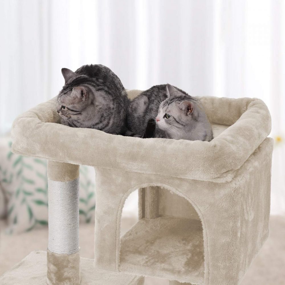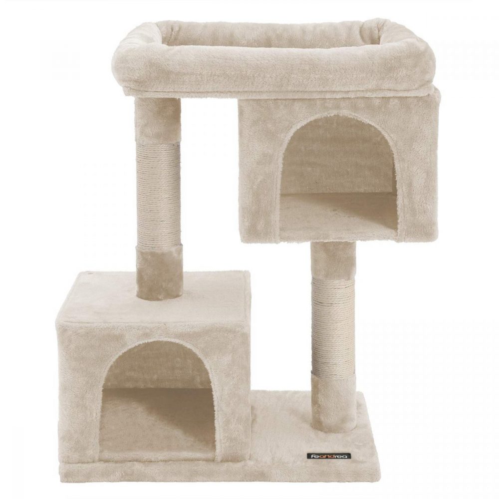 Árbol rascador para gatos con columnas de sisal, 2 viviendas, beige
