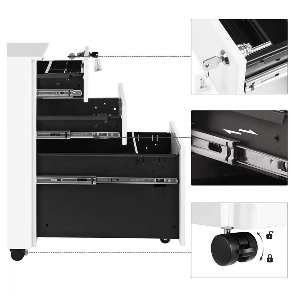 Capacidad de Almacenamiento Amplia: Con 3 amplios cajones, este archivador te permite almacenar eficazmente una variedad de documentos y accesorios de oficina, manteniendo todo accesible pero fuera de la vista.