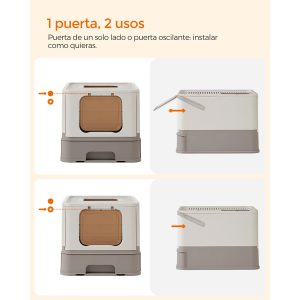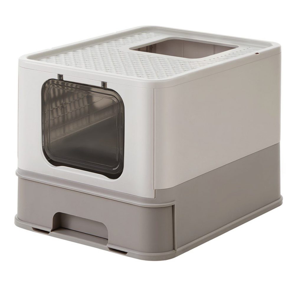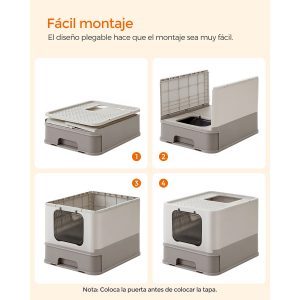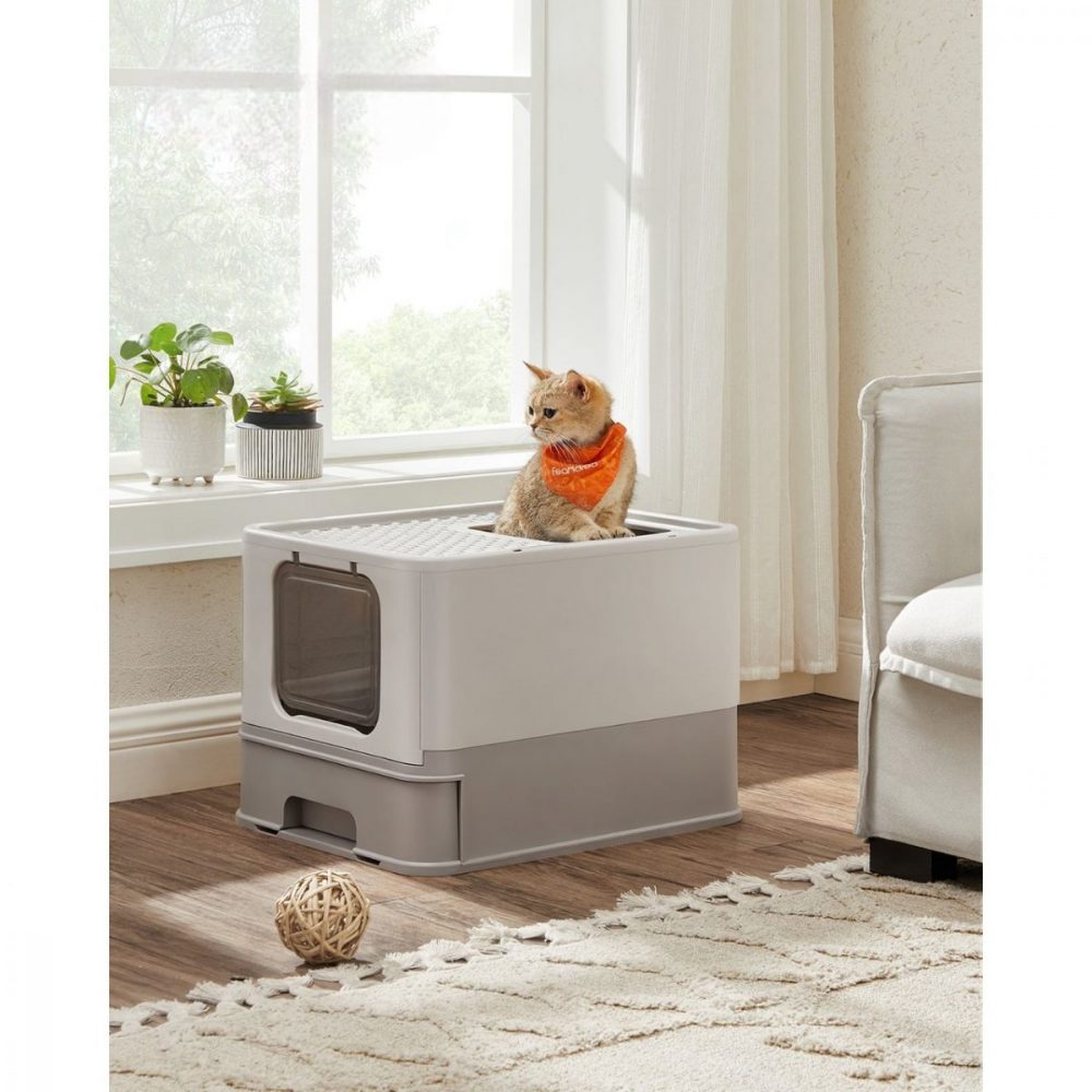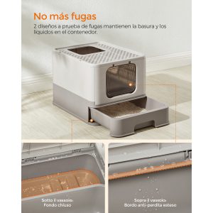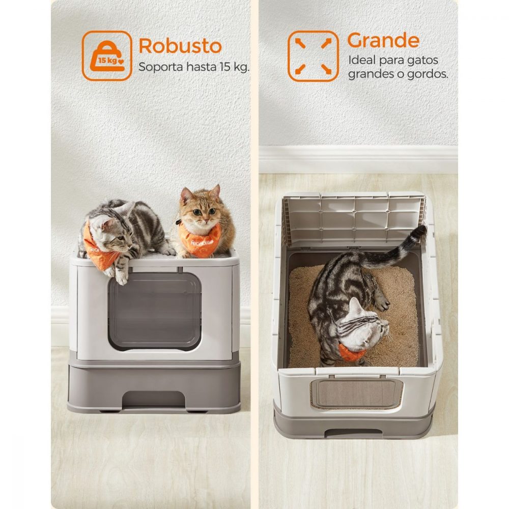 Arenero para gatos grandes con bandeja extraíble, avena y gris cálido