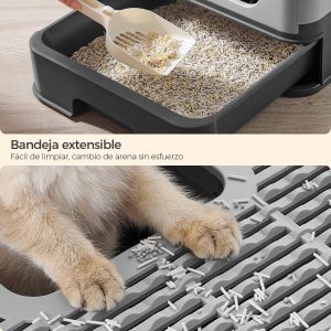 Equipada con una bandeja deslizante única, esta caja de arena facilita extraordinariamente la tarea de recoger o cambiar la arena. Incluye además una pala y un cepillo para una limpieza completa, mientras que su ingeniosa rejilla en la parte superior minimiza los residuos, manteniendo tu hogar más limpio y libre de desorden.