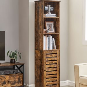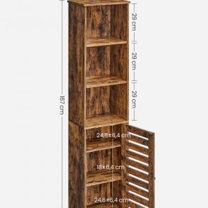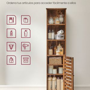 Este armario alto de baño en color marrón rústico es una adición elegante y práctica para cualquier hogar. Diseñado para maximizar el espacio de almacenamiento y mejorar la estética de tu hogar, este mueble es ideal para organizar utensilios de baño, exponer decoraciones o guardar libros y otros artículos en diferentes habitaciones. Su diseño robusto, duradero y seguro lo hace perfecto para un uso prolongado y confiable.