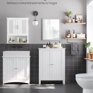 Estilo Rústico y Versatilidad: El armario blanco en estilo rústico combina con los pomos de metal, adaptándose a cualquier espacio y función. Puede utilizarse como armario de baño, armario zapatero en el pasillo, en la cocina o como armario botiquín, ofreciendo una funcionalidad perfecta.