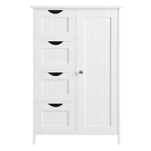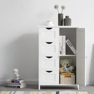 Organización Eficiente: Equipado con una mesa para artículos de uso diario, 4 cajones para objetos pequeños, y un estante ajustable de 3 niveles detrás de la puerta, este mueble permite una organización versátil y eficaz de tus pertenencias.