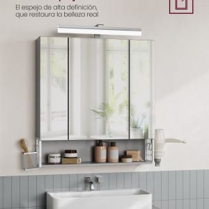 Privacidad y Estilo: Tres puertas con espejo ocultan tus artículos personales, ofreciendo un espacio de almacenamiento cerrado que combina elegancia y protección de la privacidad en tu baño.