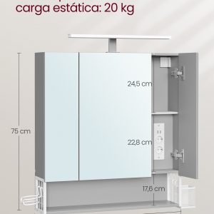Eleva la funcionalidad y el estilo de tu baño con nuestro innovador armario, diseñado para satisfacer las necesidades de organización y conectividad modernas. Equipado con características pensadas para tu comodidad, este armario no solo organiza tus esenciales de baño sino que también integra soluciones inteligentes para tus dispositivos electrónicos.
