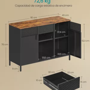 Durabilidad y Fácil Mantenimiento: Fabricado con materiales de alta calidad, este armario es resistente a la humedad y fácil de limpiar. La encimera soporta hasta 72,6 kg, proporcionando gran capacidad para objetos pesados.