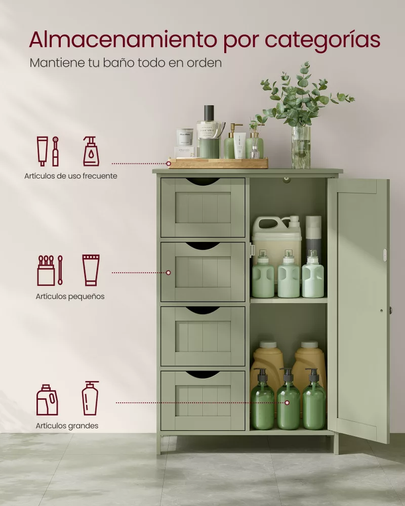 Este armario de baño combina funcionalidad y estilo para maximizar el espacio de almacenamiento en áreas compactas. Ofrece una solución ordenada y eficiente para mantener organizados los artículos de uso frecuente, objetos pequeños, y otros de diferentes tamaños. Su diseño compacto lo hace ideal para espacios limitados, sin sacrificar su capacidad de almacenamiento.