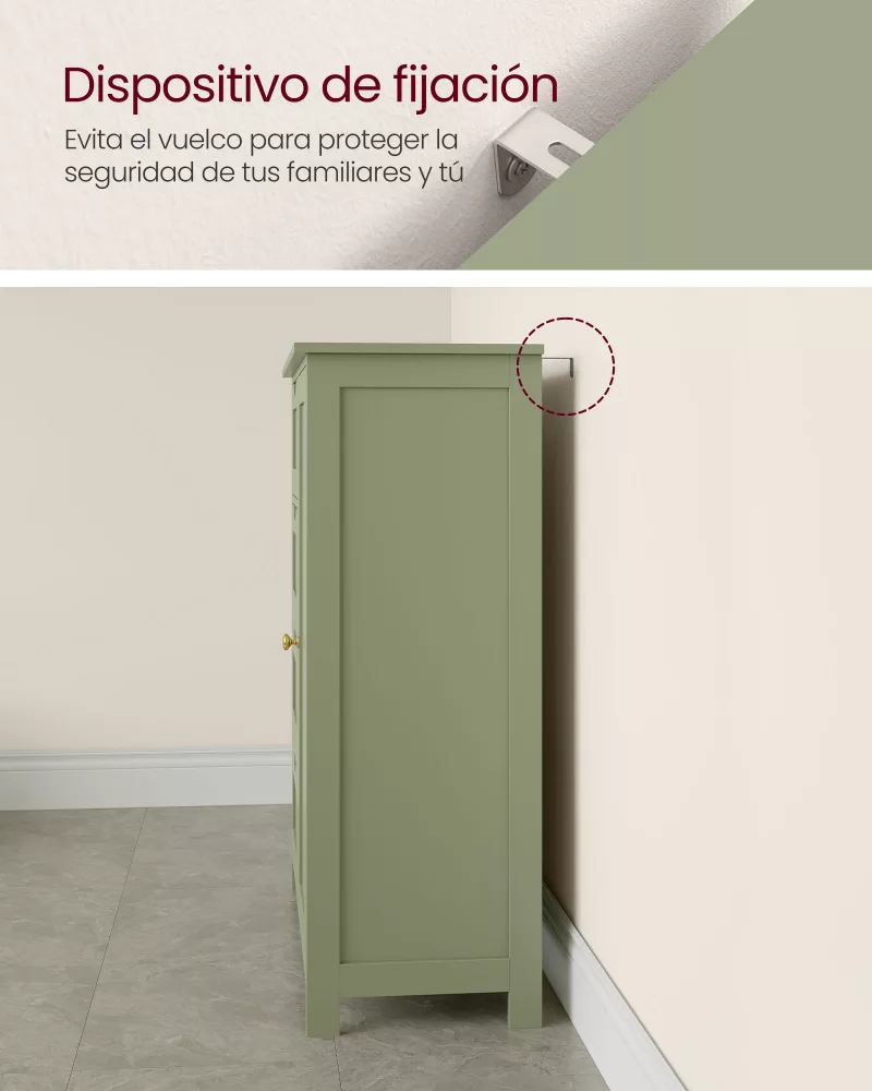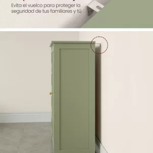 Construcción Robusta: Fabricado con paneles de MDF de alta calidad, garantiza estabilidad y durabilidad. Además, incluye una protección antivuelco para asegurar el mueble contra inclinaciones o caídas.