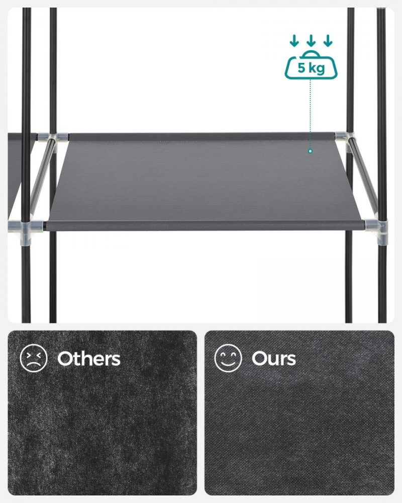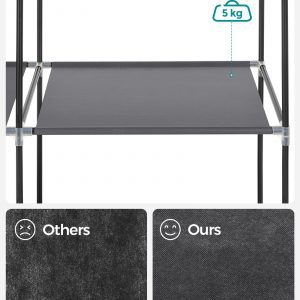 Lejos de ser un simple mueble de almacenamiento, este armario de tela eleva la decoración de cualquier espacio con su tela no tejida de color negro, ofreciendo una solución estética para mantener tu ropa ordenada y a mano. Su diseño especial no solo aporta carácter a tu hogar, sino que también promete ser un punto focal de admiración.