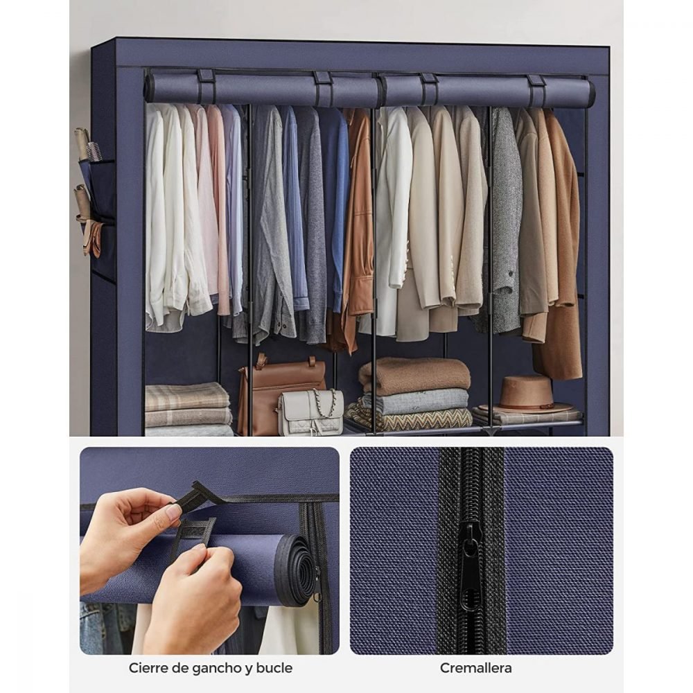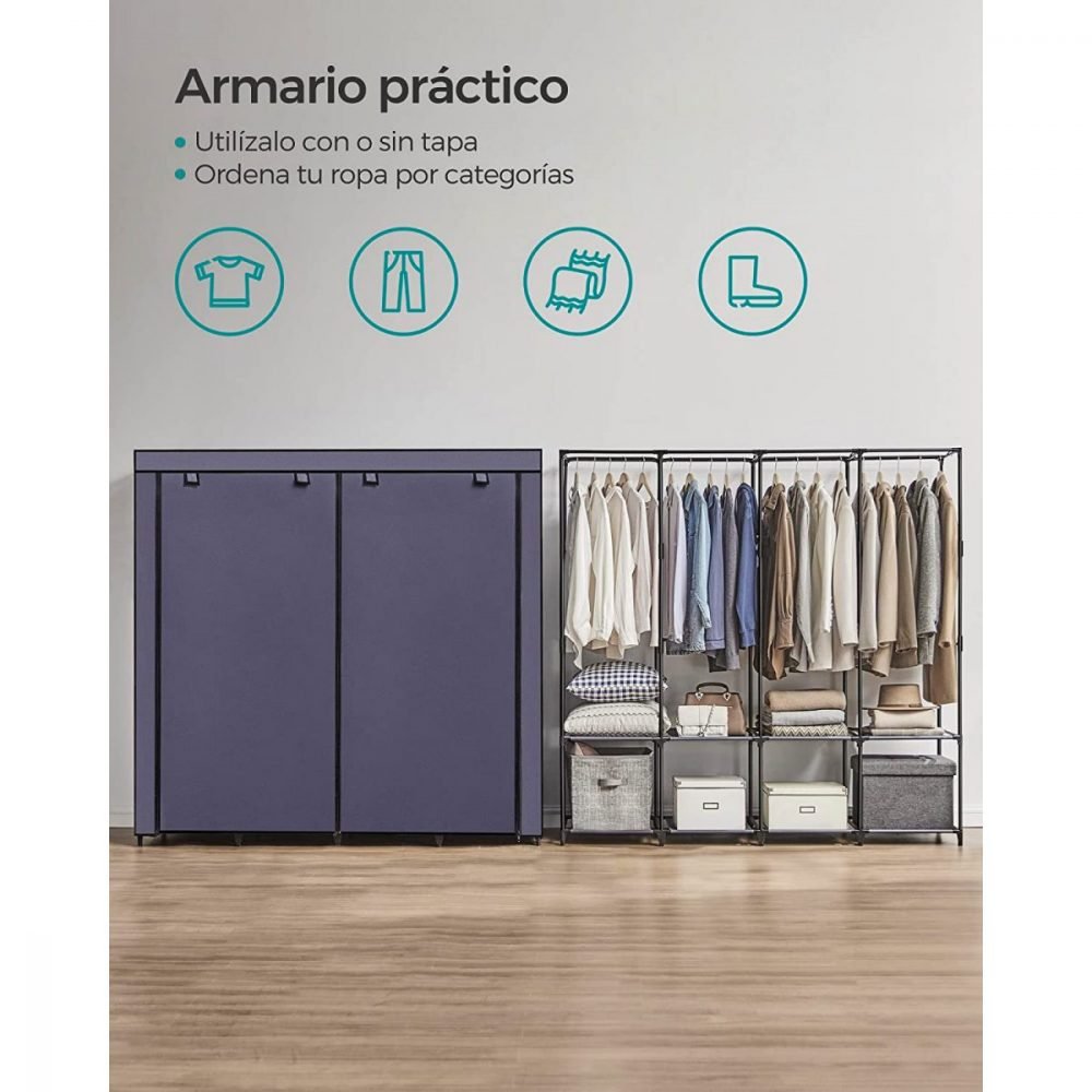 Armario de ropa de tela con estantes, dormitorio, salón, azul