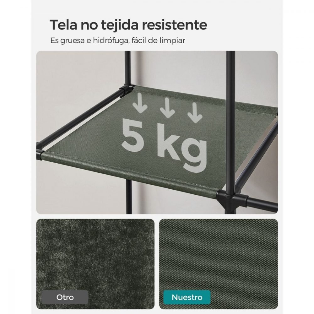 Este armario de tela incluye 4 bolsillos de almacenamiento en un lado, perfectos para organizar objetos pequeños como calcetines, llaves y guantes. Ya no tendrás que revolver buscando tus cosas pequeñas cuando estés apurado.