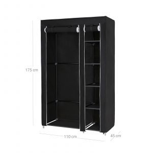 Este armario cuenta con una estructura robusta, compuesta por tubos de acero y uniones de plástico de alta calidad, asegurando una gran estabilidad y resistencia. Capaz de soportar hasta 5 kg por estante y 25 kg en la barra para colgar, ofrece el soporte perfecto para una amplia variedad de prendas y accesorios, distribuyendo el peso de manera uniforme para una mayor durabilidad.