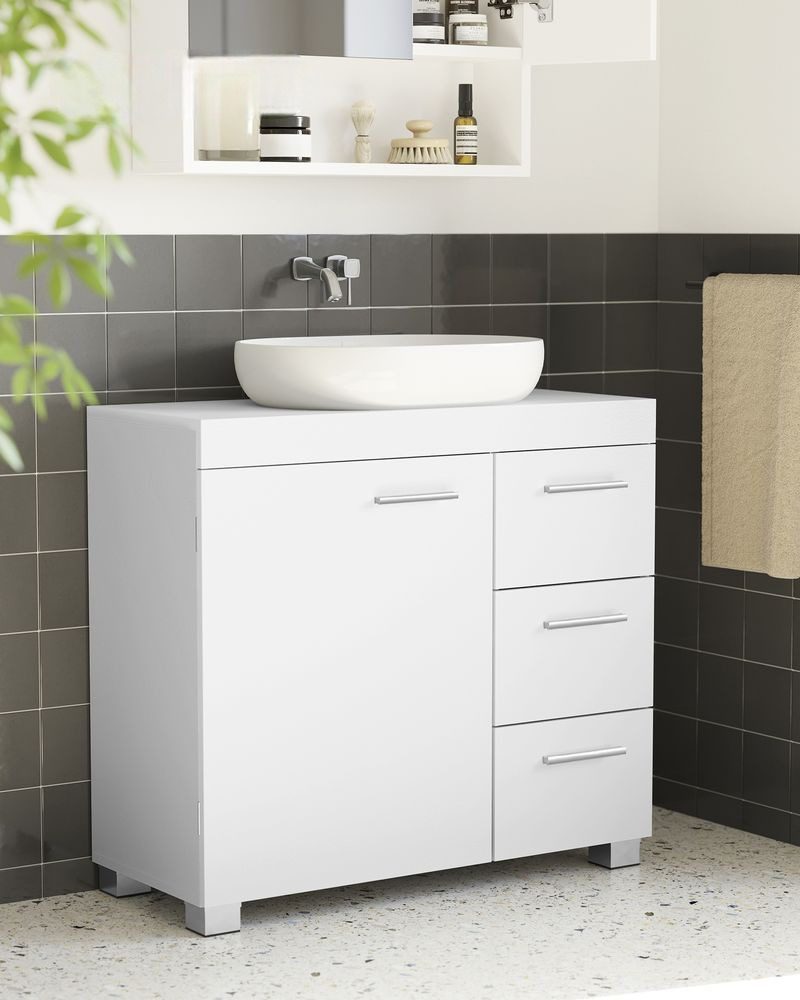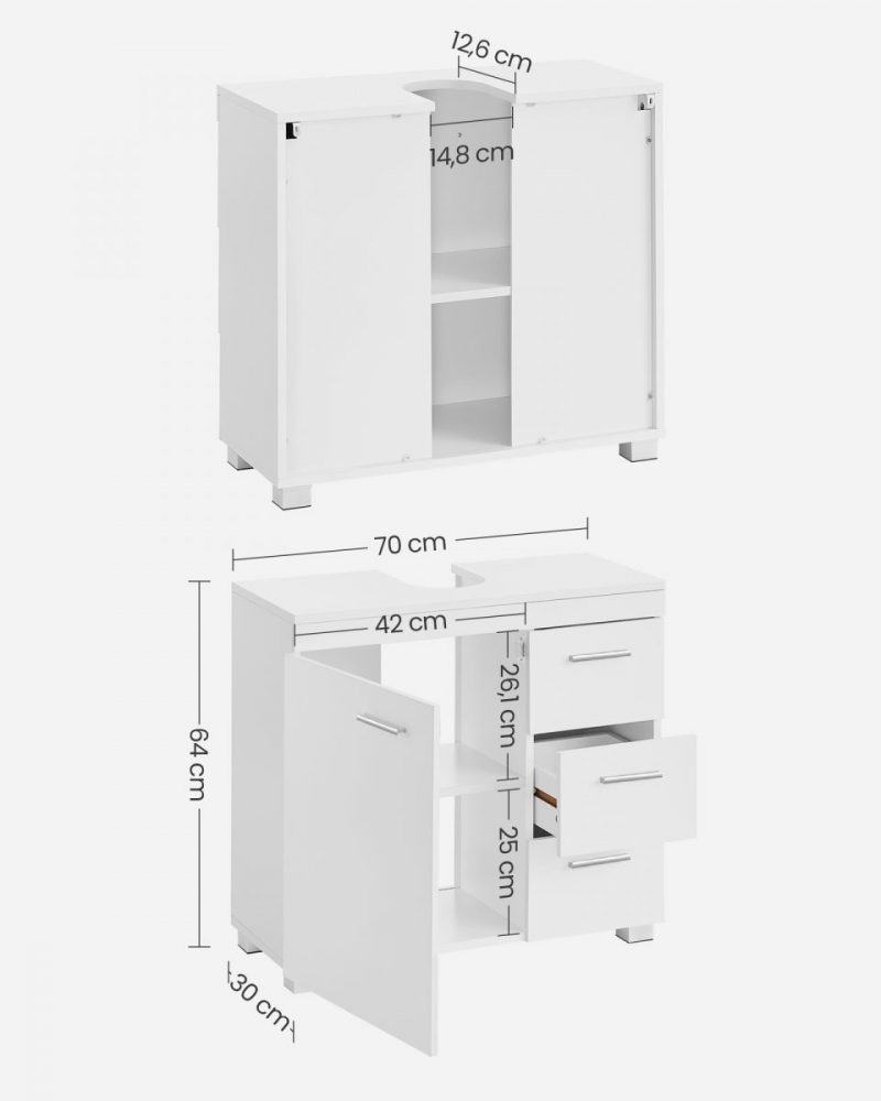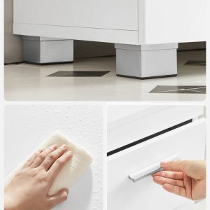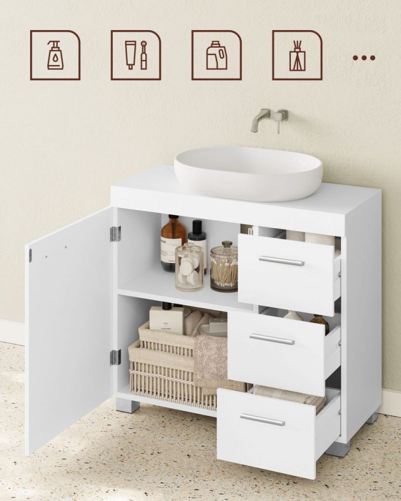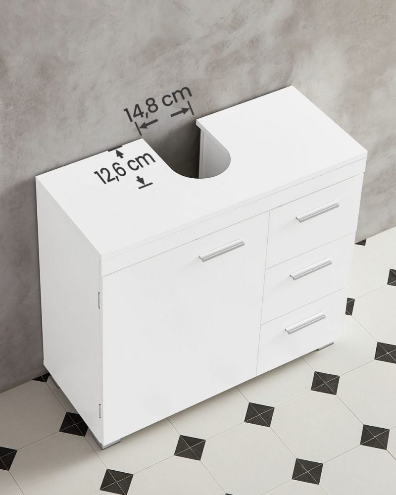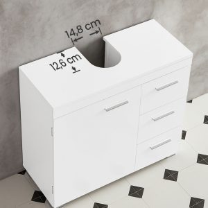 Construcción Robusta y Estable: Fabricado con tableros MDF de alta calidad, este mueble bajo lavabo es duradero y está diseñado para un uso prolongado. Incluye piezas antivuelco para mayor estabilidad.