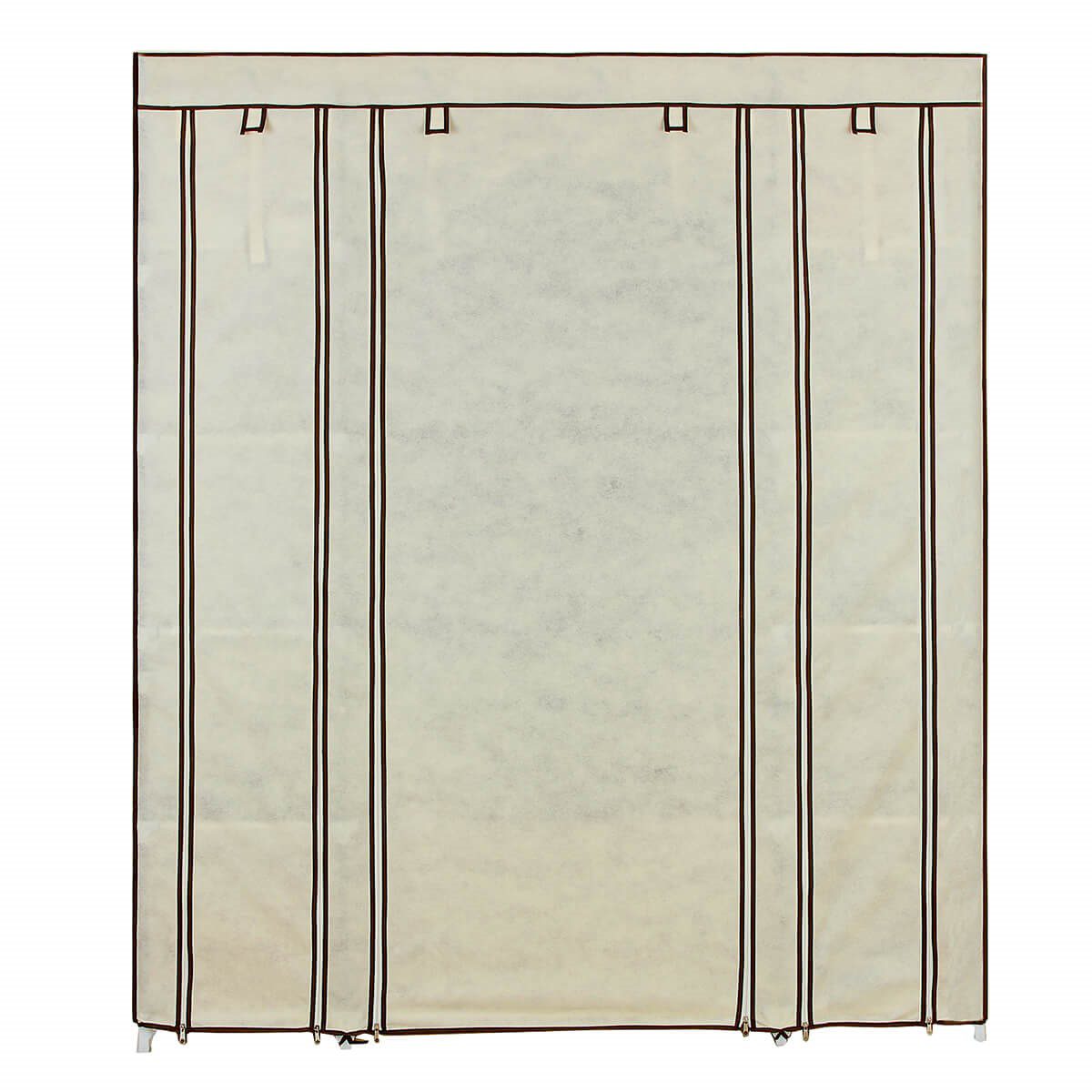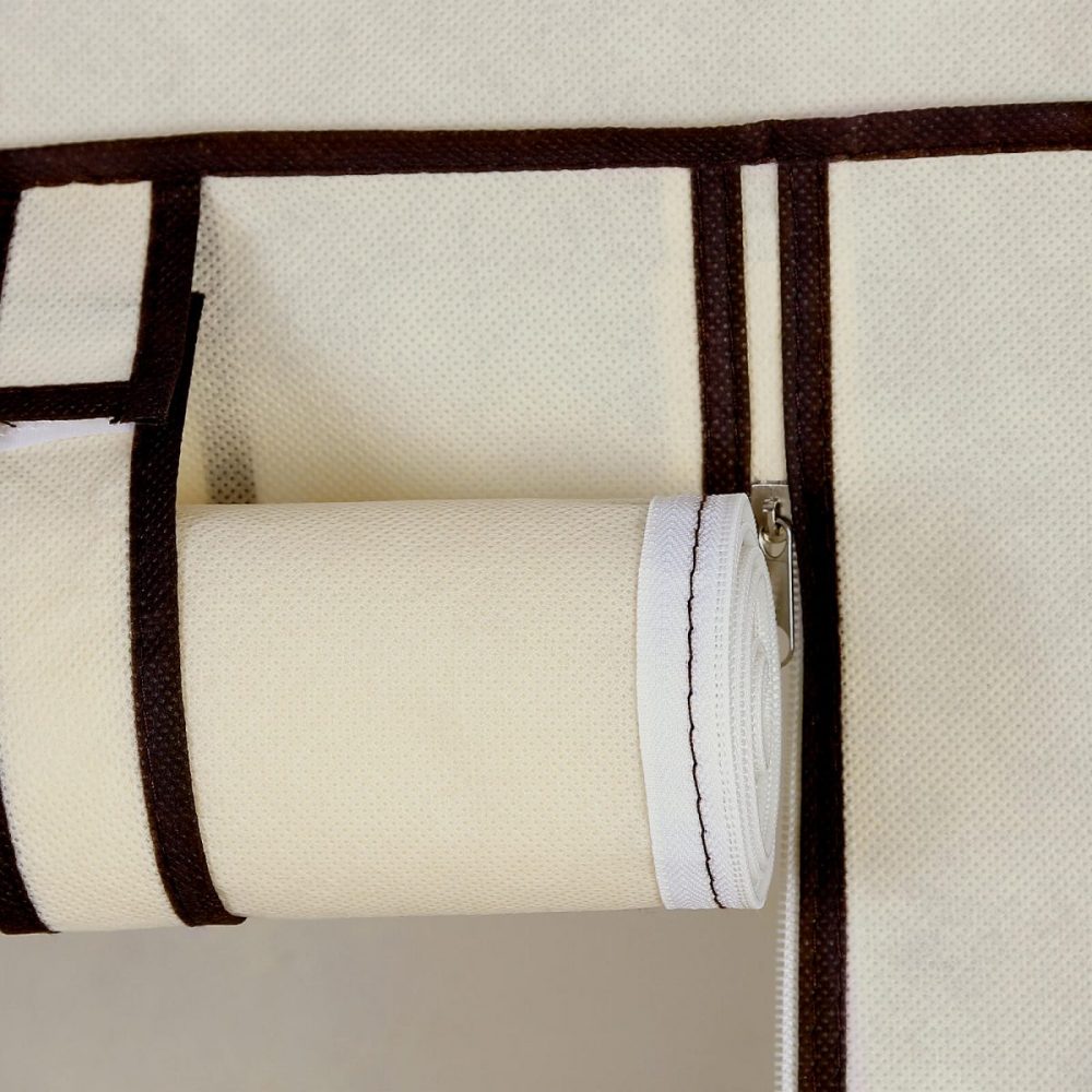 La cubierta del armario cuenta con cremalleras cosidas de alta resistencia, diseñadas para un uso frecuente sin complicaciones, permitiendo un acceso cómodo y seguro a tus prendas.