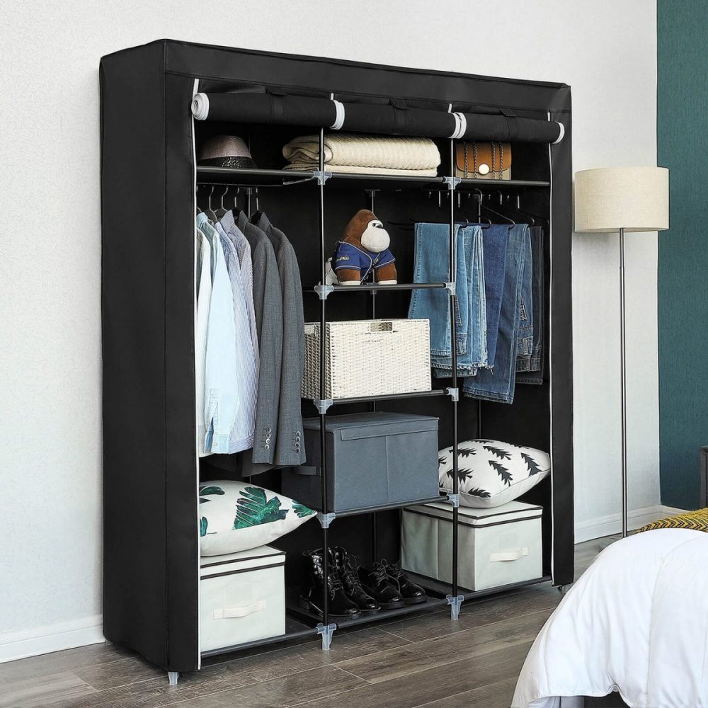 Fabricado en tubos de acero y tela no tejida, este armario cuenta con una cubierta con cremalleras cosidas, reforzadas y resistentes, que permiten abrir y cerrar la puerta con facilidad. Protege tus prendas de la suciedad y ofrece durabilidad a largo plazo.