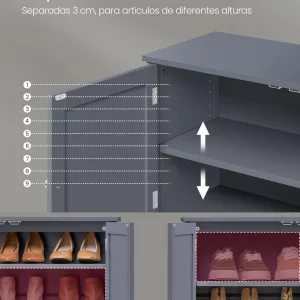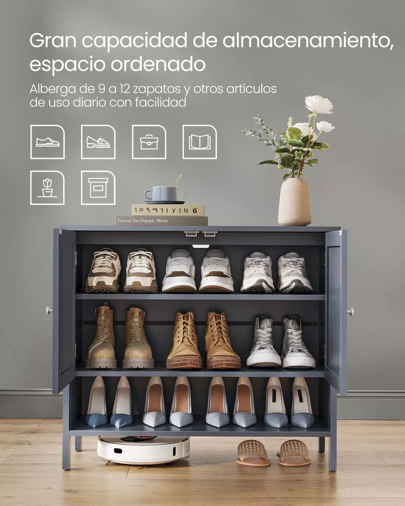 Versatilidad de Uso: Este mueble no solo es perfecto para almacenar zapatos, sino que también se adapta a otros espacios como la sala de estar, el comedor o la entrada, proporcionando almacenamiento adicional para libros, decoraciones y otros artículos del hogar.