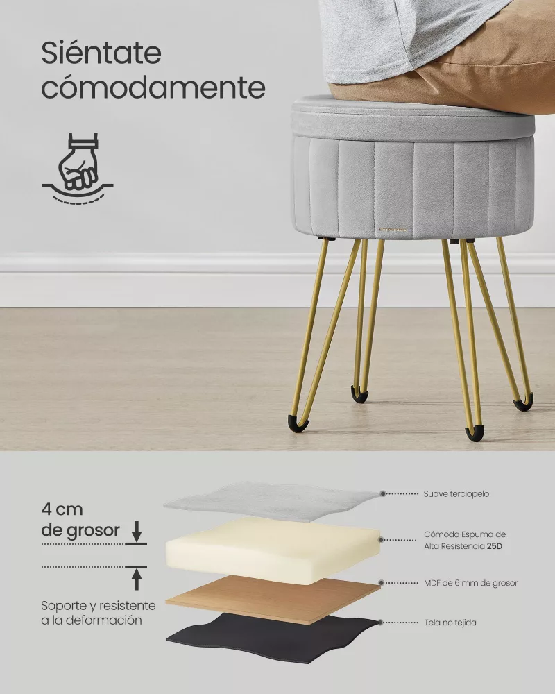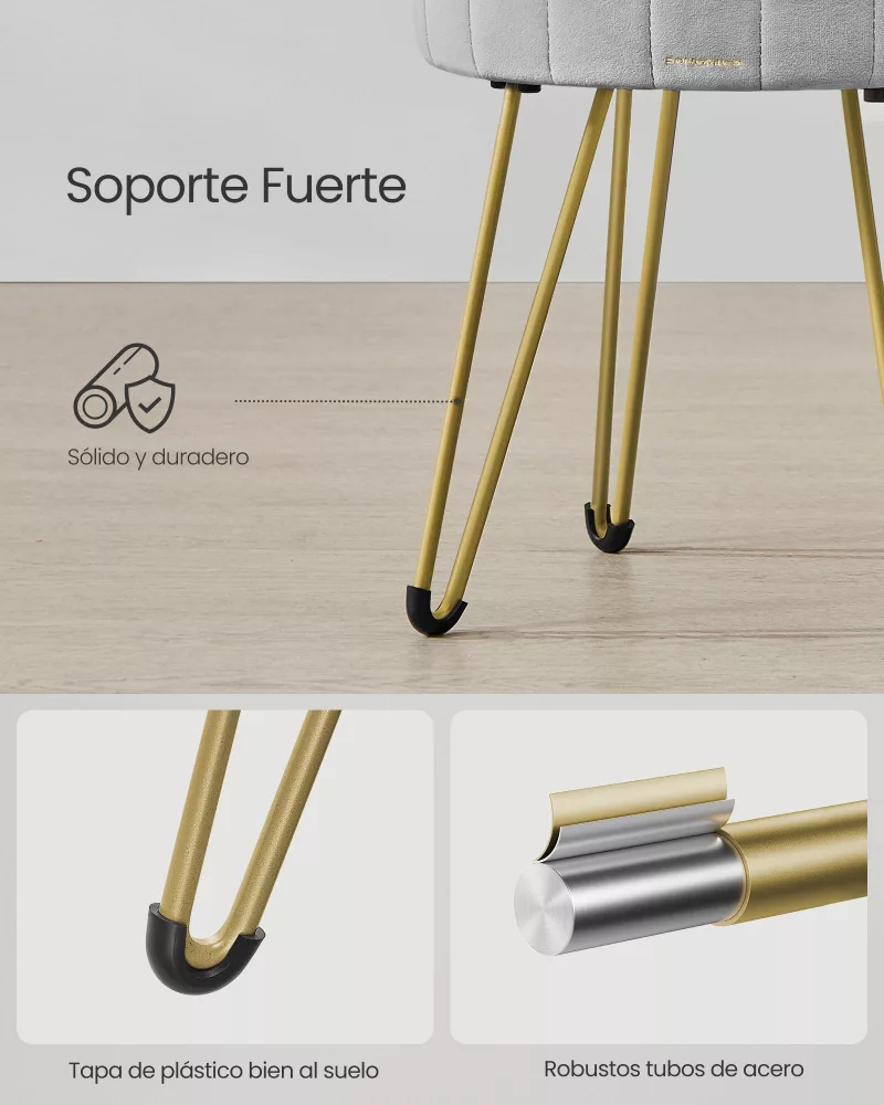 Material: Terciopelo, Espuma 25D de Alta Elasticidad, MDF (Tablero de Fibra de Densidad Media), Acero