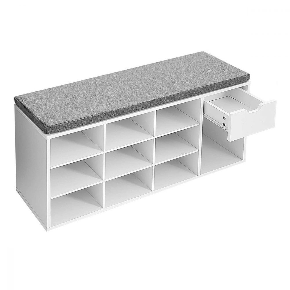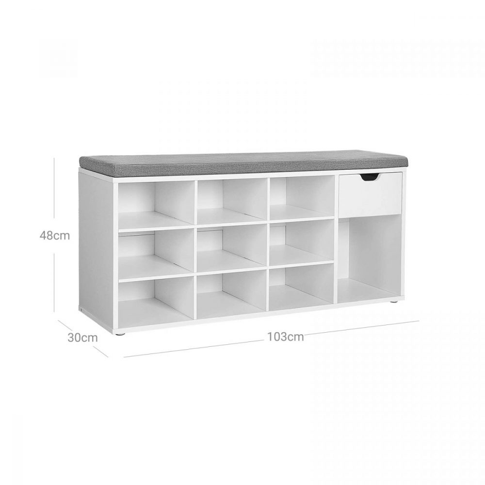 Banco para zapatos con asiento acolchado, blanco, 104x30x48 cm
