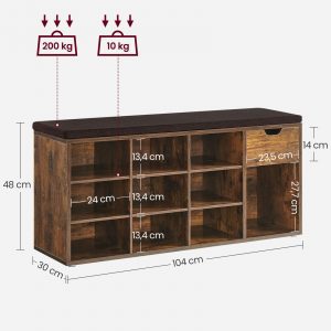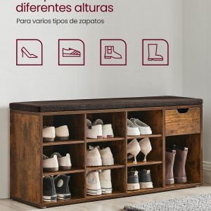Asiento Cómodo y Resistente: Equipado con un cojín de espuma y una construcción sólida, el banco soporta hasta 200 kg, ideal para sentarse mientras te calzas los zapatos.