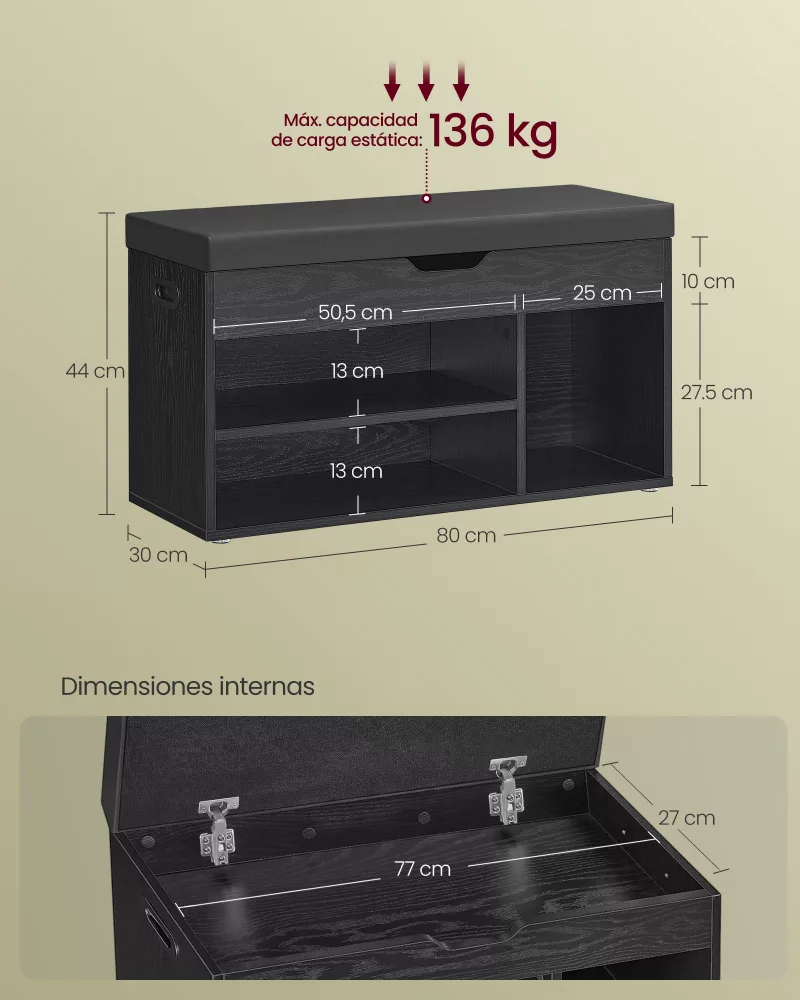 Versátil: Perfecto para dormitorios, entradas, pasillos o pisos, este banco zapatero se integra armoniosamente con cualquier estilo de decoración, manteniendo tu hogar organizado y acogedor.