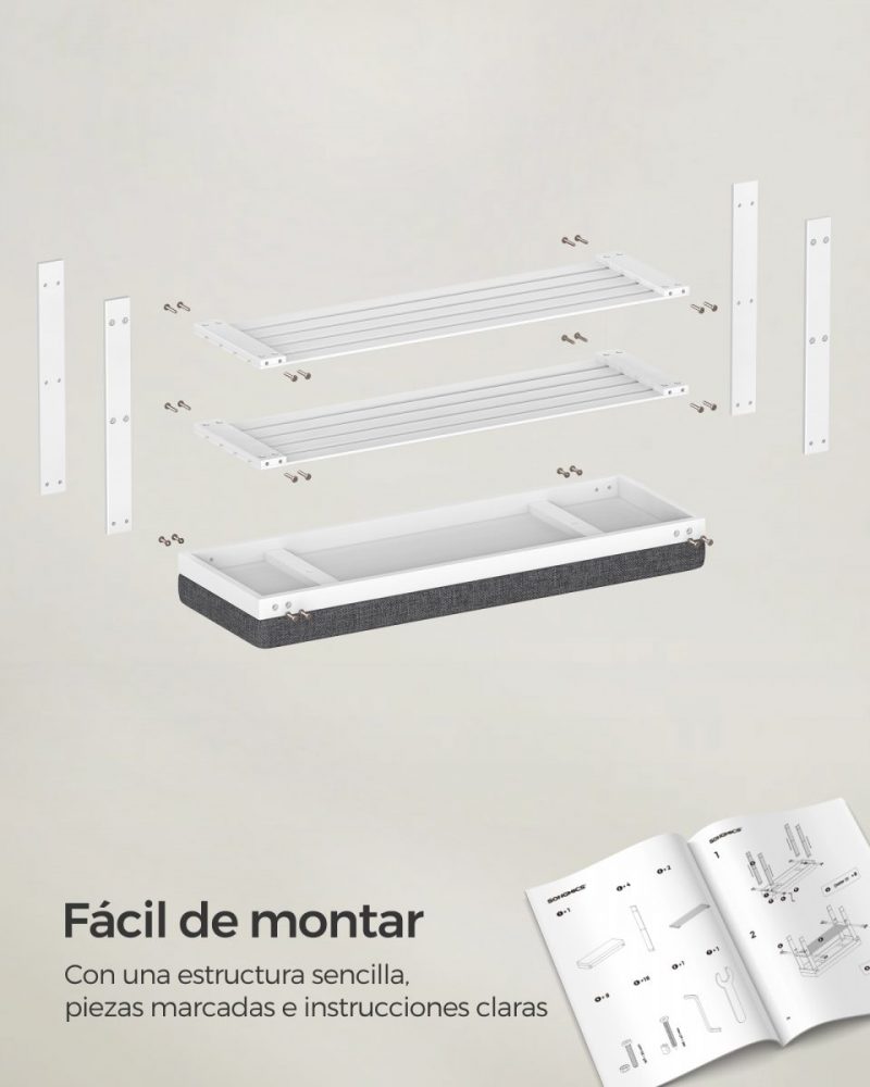 Este banco zapatero es fácil de montar, gracias a su estructura simple, instrucciones detalladas y tornillos de punta afilada. No necesitas invertir horas en su ensamblaje.