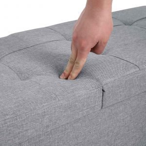 Nuestro otomano de almacenamiento no solo es un mueble, sino un punto de atracción en cualquier espacio gracias a su elegante color gris claro y el adorno de chesterfield en el asiento acolchado. Este banco combina perfectamente con cualquier decoración, aportando un toque de sofisticación y estilo a tu hogar.