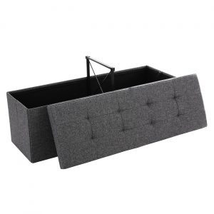 Versatilidad y Confort: Capaz de soportar hasta 300 kg, este puff no solo sirve como un baúl de almacenamiento, sino también como un cómodo asiento o una mesa auxiliar, ofreciendo múltiples funcionalidades en un solo mueble.