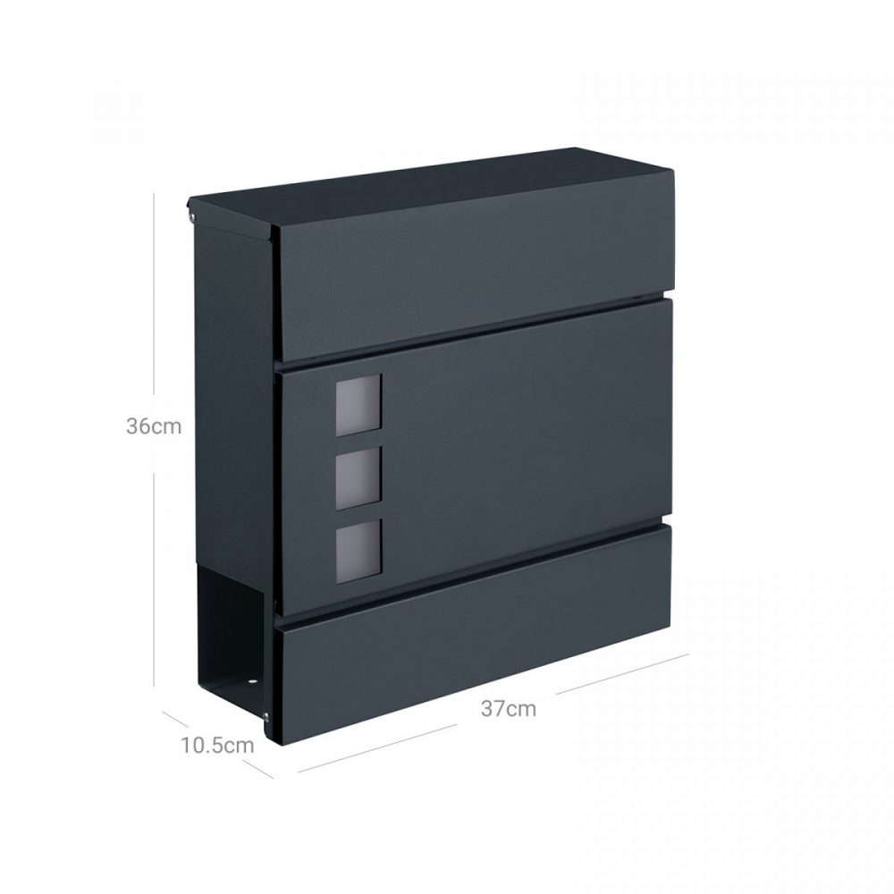 Buzón moderno de pared con cerradura y porta periódicos, gris antracita