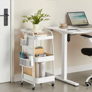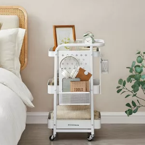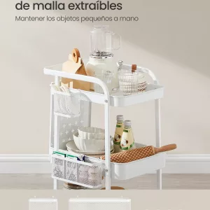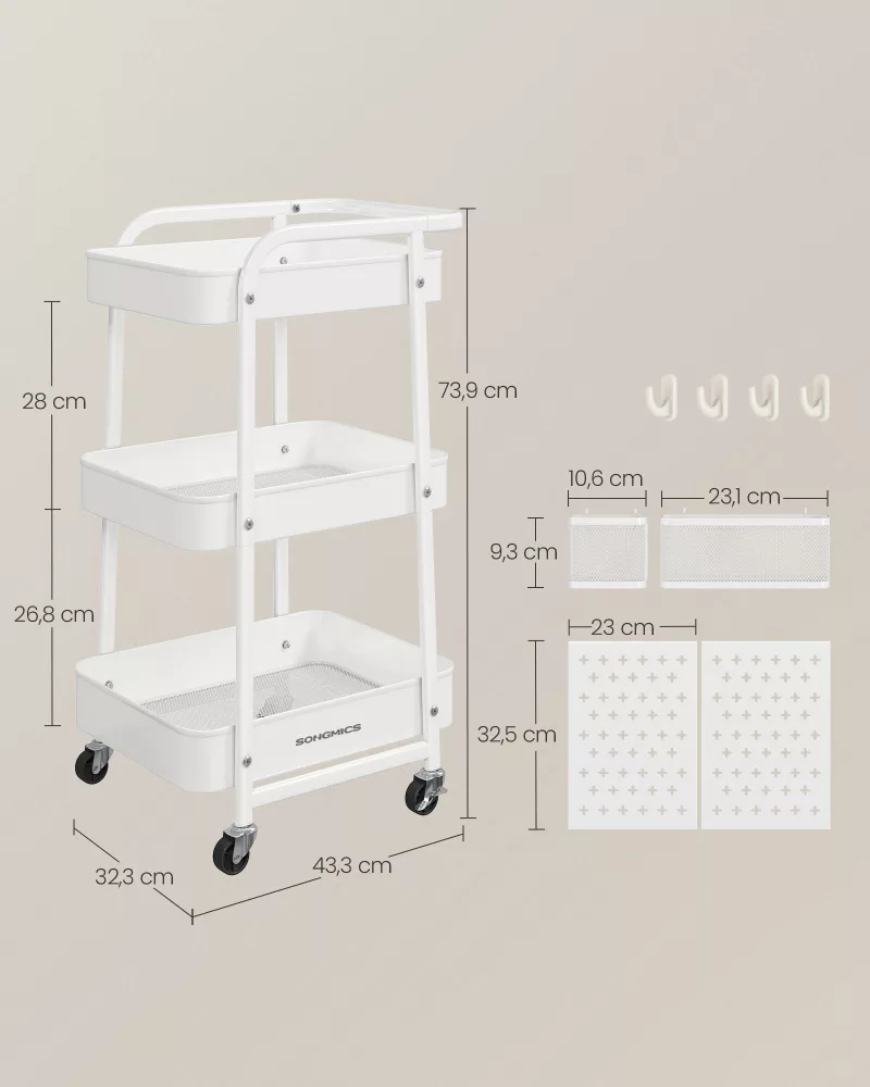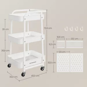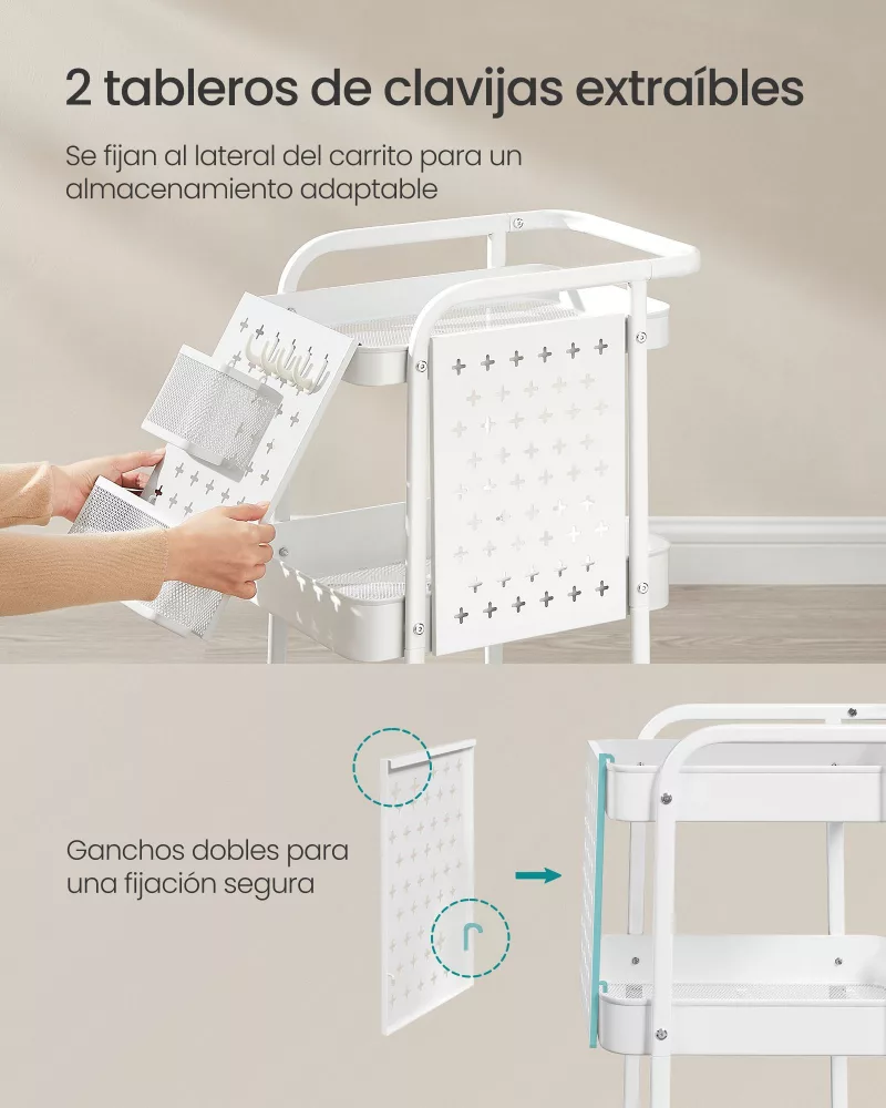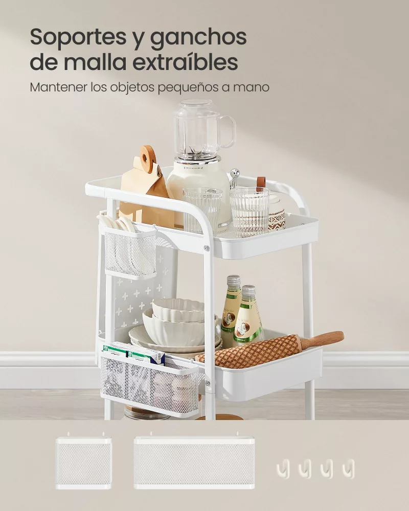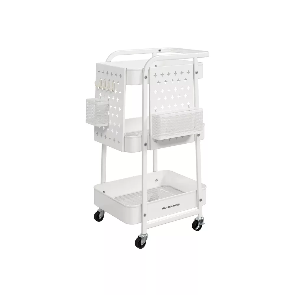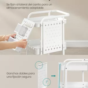 Carrito con Ruedas 3 Estantes 4 Ganchos Blanco Nube