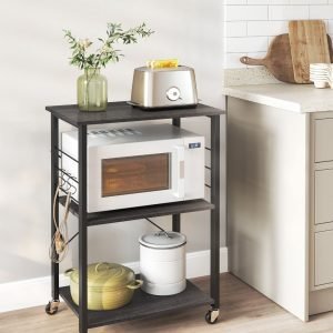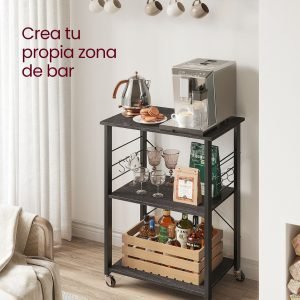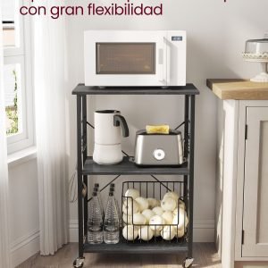 Diseñada pensando en la funcionalidad y la eficiencia, esta estantería no solo ofrece un hogar para tu microondas sino también espacio adicional para otros utensilios de cocina. Con unas dimensiones inteligentes de 40 x 60 x 89 cm y estantes espaciados en 38 cm, su diseño compacto se adapta perfectamente a espacios reducidos, brindando un aspecto organizado y estilizado a tu cocina.