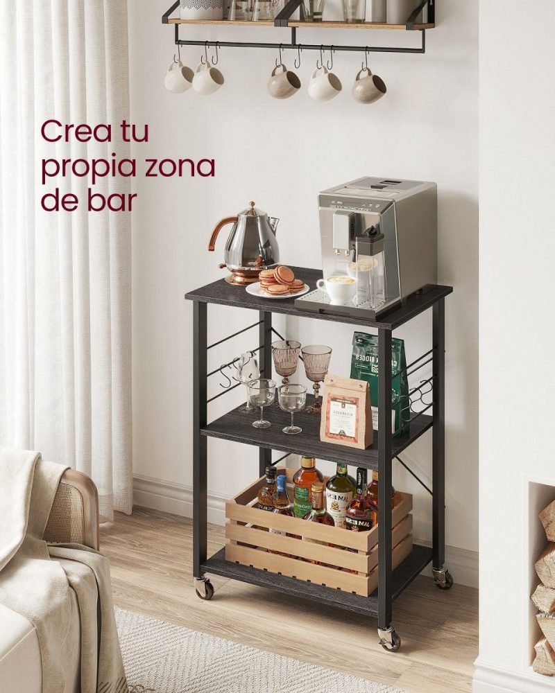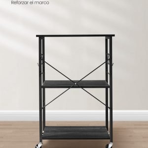 Construcción Robusta y Duradera: El uso de materiales de alta calidad como el aglomerado y el acero garantiza la durabilidad de esta estantería. Además, está reforzada con soportes en forma de X en la parte trasera, asegurando un soporte sólido para todos tus utensilios de cocina.