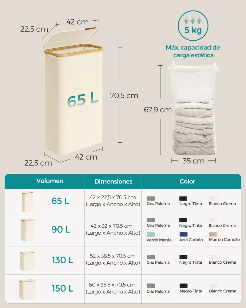 Cesto para Ropa Sucia de 65L: Organización y Estilo para tu Hogar