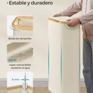 Duradero y Estable: Fabricado con tejido Oxford 600D, este cesto para ropa es resistente al agua y a los desgarros, lo que lo hace fácil de limpiar y mantener. Su estructura reforzada con varillas de fibra de vidrio asegura una gran estabilidad, incluso cuando está completamente lleno.