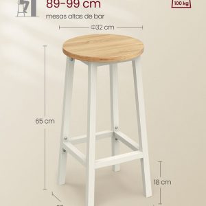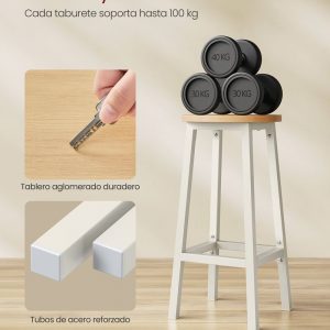 El tablero aglomerado de alta calidad, la robusta estructura metálica y el reposapiés dan gran estabilidad. Cada taburete soporta hasta 100 kg; las almohadillas para los pies hacen que el taburete sea antideslizante y seguro para sentarse.