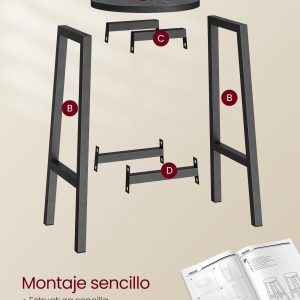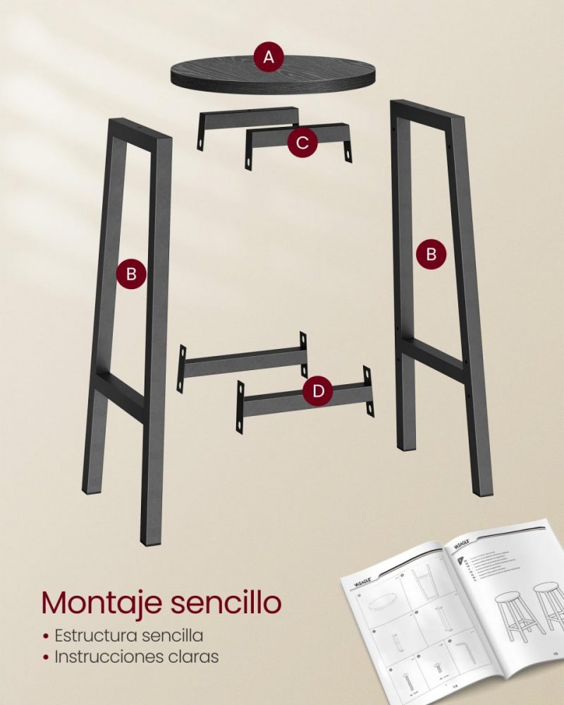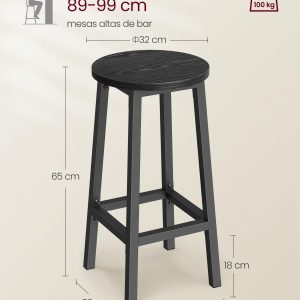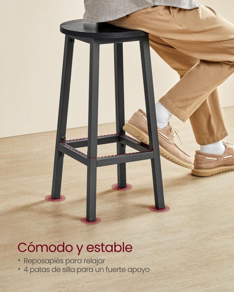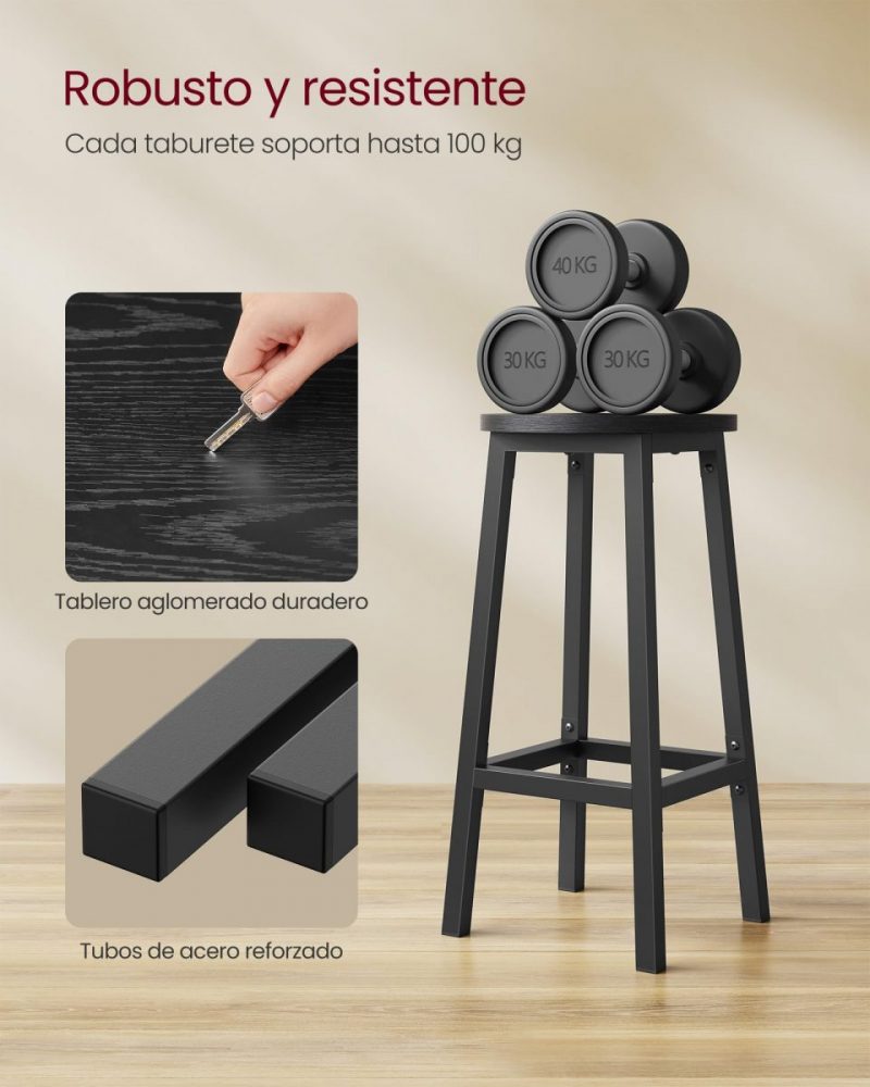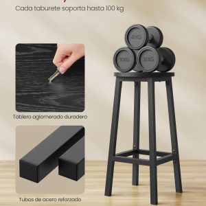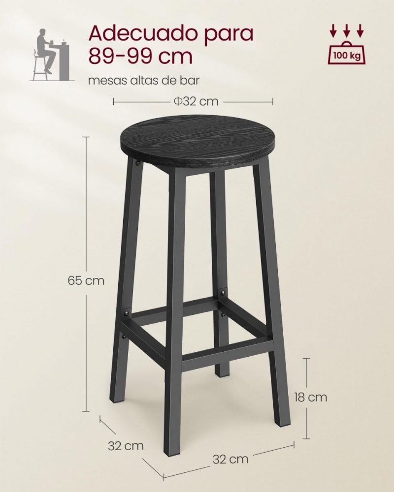 Conjunto 2 taburetes bar, asientos altos, industrial, negro ébano