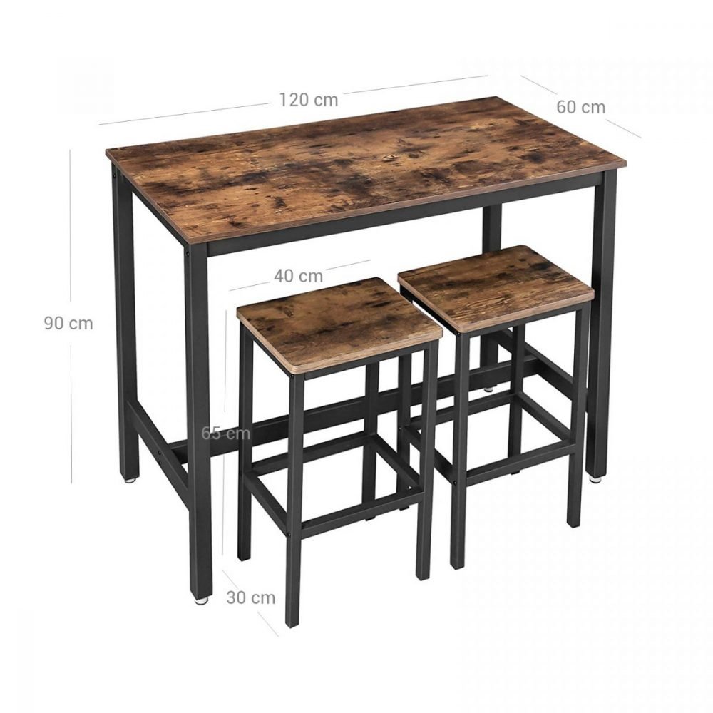 Conjunto de mesa de barra y 2 taburetes, estilo industrial