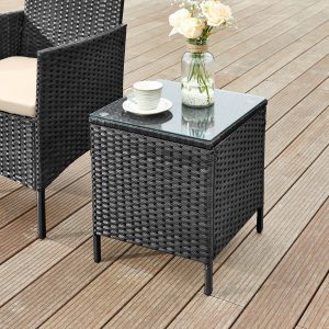 Este conjunto incluye dos sillas y una mesa lateral, ideal para crear un rincón acogedor en cualquier exterior. Cada pieza combina una estructura de hierro galvanizado con ratán PE tejido a mano, ofreciendo durabilidad y un toque rústico.