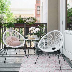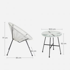 Conjunto muebles jardín 3 piezas, sillas acapulco y mesa, blanco