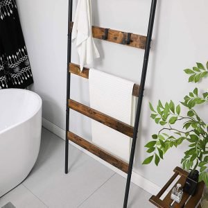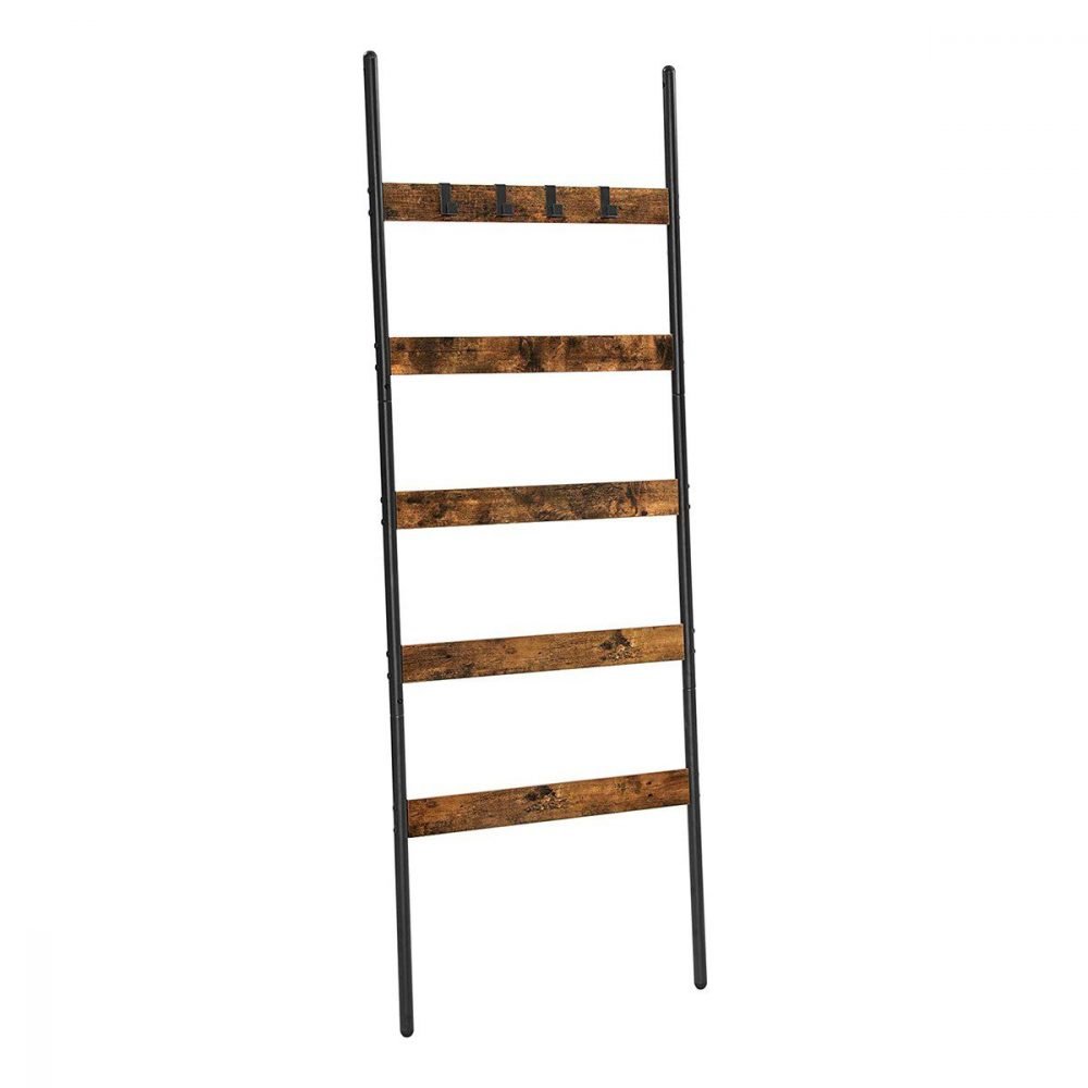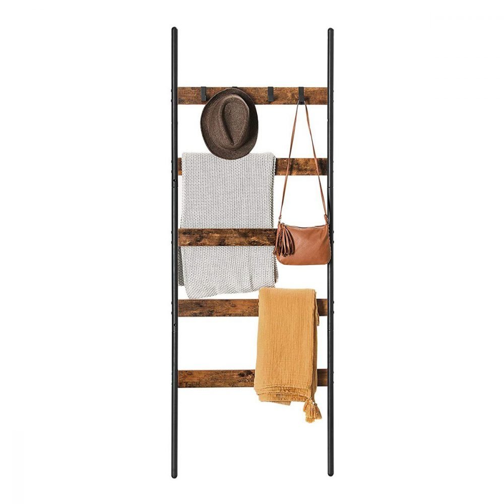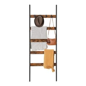 Escalera decorativa industrial, 65 cm ancho, marrón y negro