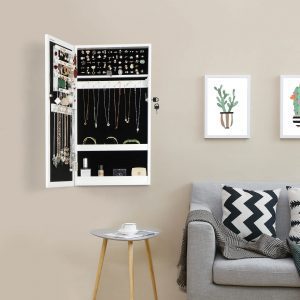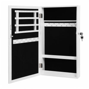 Equipado con cerradura, llaves e imán, la puerta de este joyero asegura que tus joyas estén convenientemente protegidas del polvo y accesibles solo para ti.