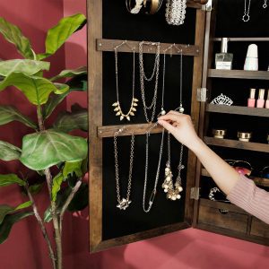 Tú decides cómo y dónde instalarlo. Gracias a su diseño versátil, este joyero colgante se puede montar en el marco de una puerta con los soportes incluidos o fijarlo a una pared sólida con los tornillos suministrados, ahorrando espacio valioso en tu hogar.