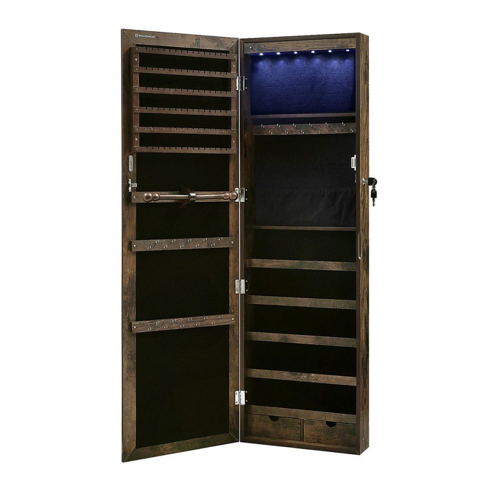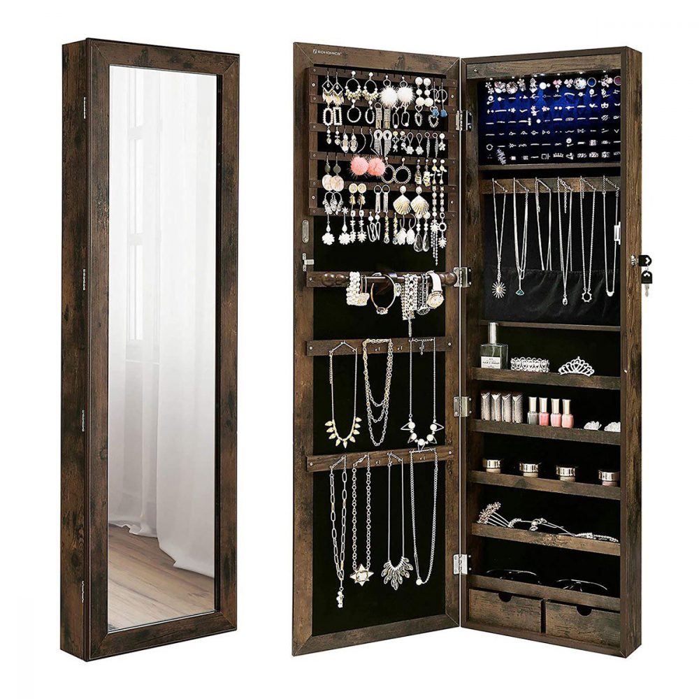Con espacio para albergar toda tu colección, este gabinete incluye 84 puntos para anillos, 90 ranuras para pendientes, 48 agujeros para tachuelas, 32 ganchos para collares, 5 estantes, 2 cajones y 1 varilla para pulseras. Al final del día, relájate desprendiéndote de tus accesorios y guárdalos de manera segura y organizada en un solo lugar.