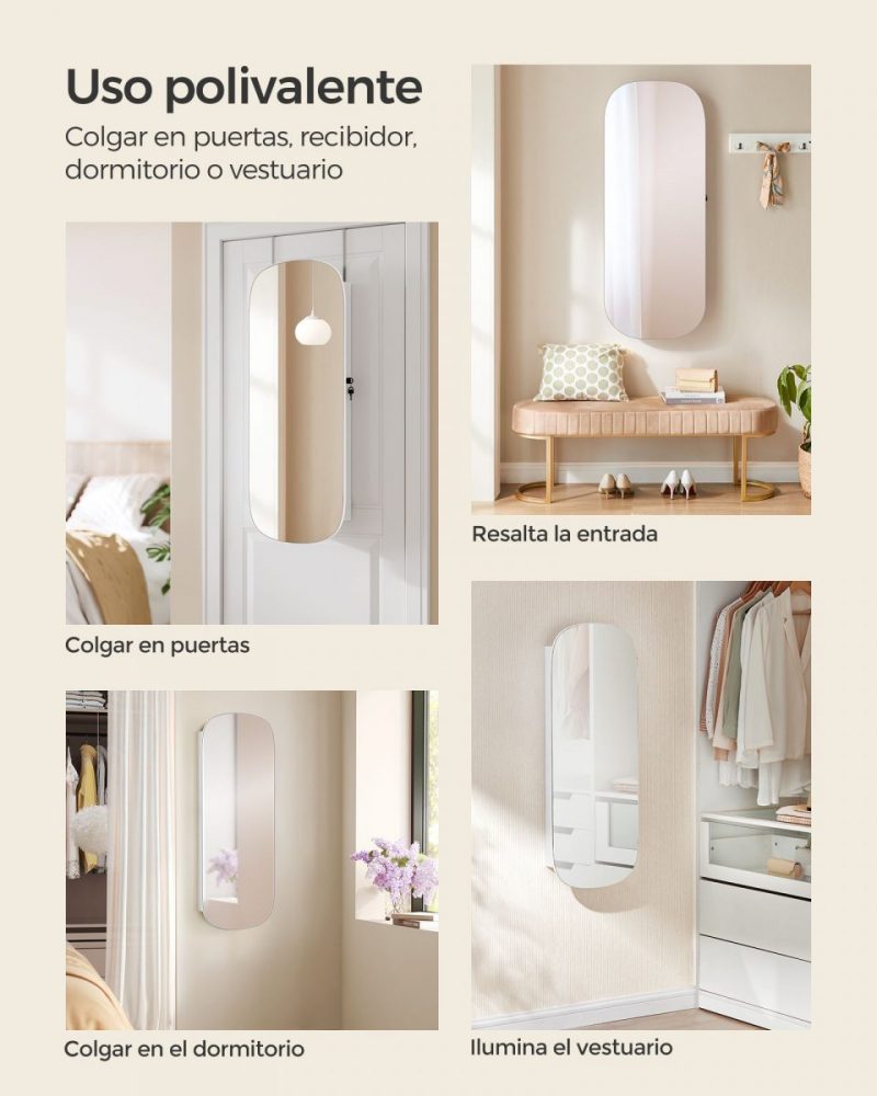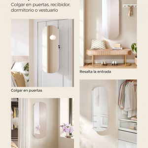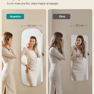 Espejo Más Ancho: Con un ancho de 42 cm, el espejo ofrece una vista amplia, facilitando la comprobación de tu apariencia de cabeza a pies antes de salir, garantizando que siempre te veas lo mejor posible.