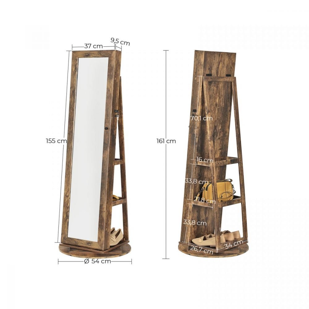 Almacenamiento Adicional: Además de la joyería, este armario dispone de 5 compartimentos, 2 estantes y una base amplia para almacenar bolsos, ropa doblada, libros, plantas, u otros objetos decorativos, maximizando el uso del espacio.