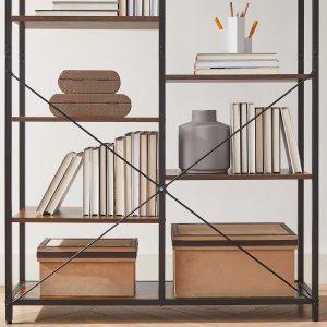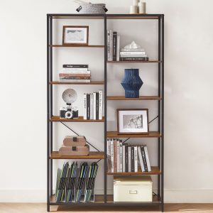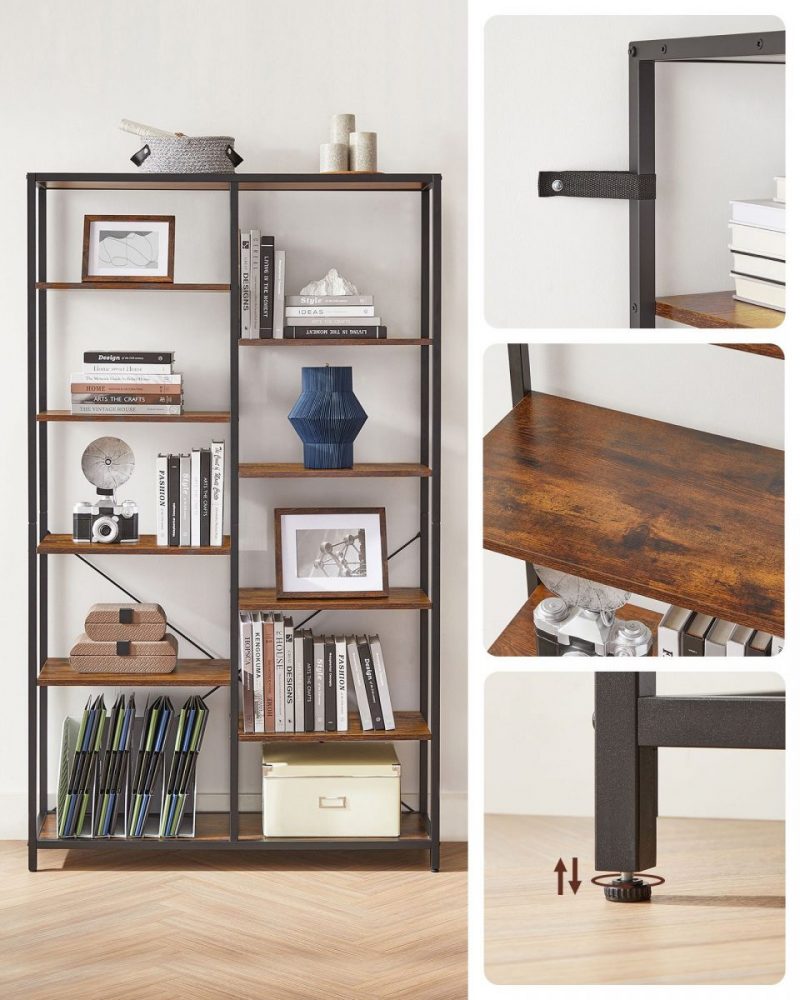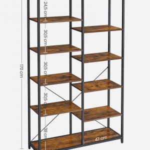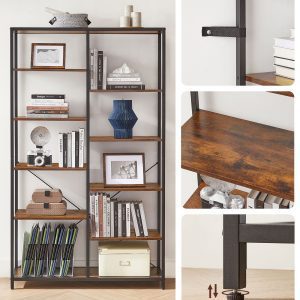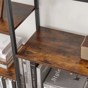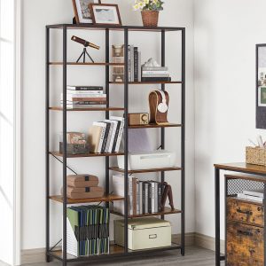 Estantería 5 niveles industrial, biblioteca pie, marrón