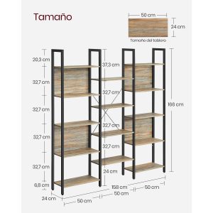 Estantería 6 niveles industrial, roble azul